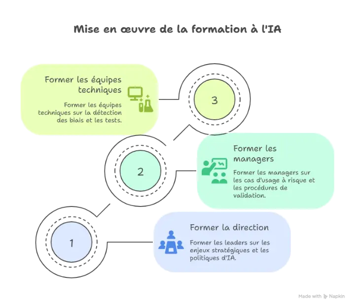 Un référent IA, épaulé par un comité de pilotage mêlant direction, métiers, IT, et conformité. Ce n’est pas qu’une affaire “tech” !