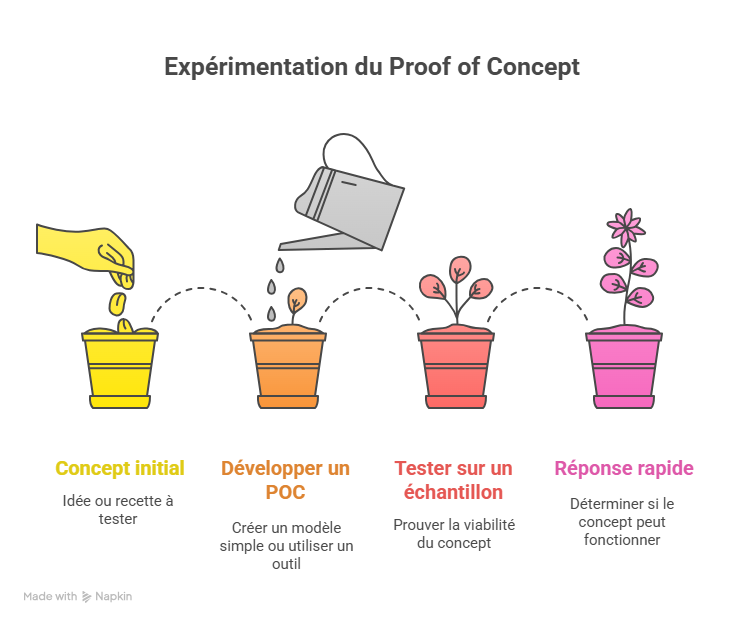 L'objectif est de développer un premier modèle très simple ou d'utiliser un outil sur un échantillon de données pour prouver que le concept est viable.