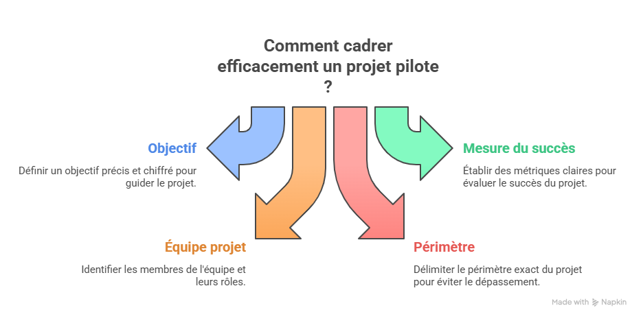 Votre projet pilote doit tenir sur une page. Rédigez une note de cadrage simple qui répond à ces questions :